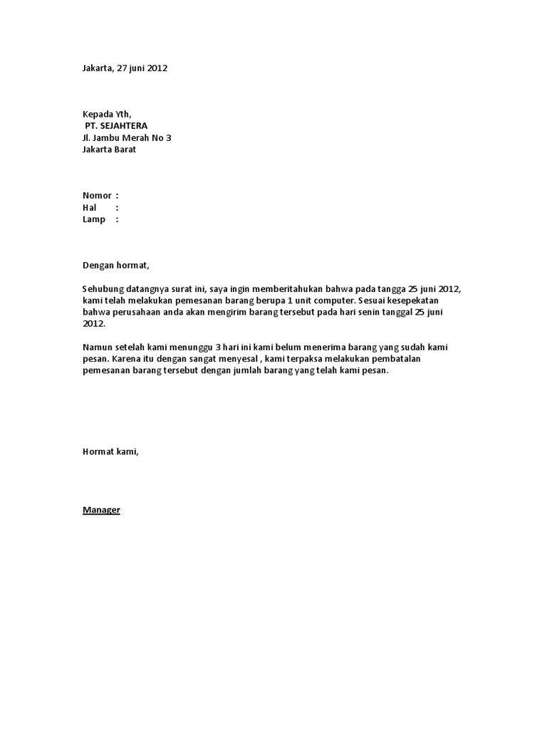 Simak perhitungan lengkap biaya pembuatan sertifikat tanah. Surabaya, 04 agustus 2011 kepada, yth. Text of contoh surat pembatalan barang. Simpansimpan contoh surat pembatalan barang untuk nanti. Contoh surat pesanan barang order cara buat surat.